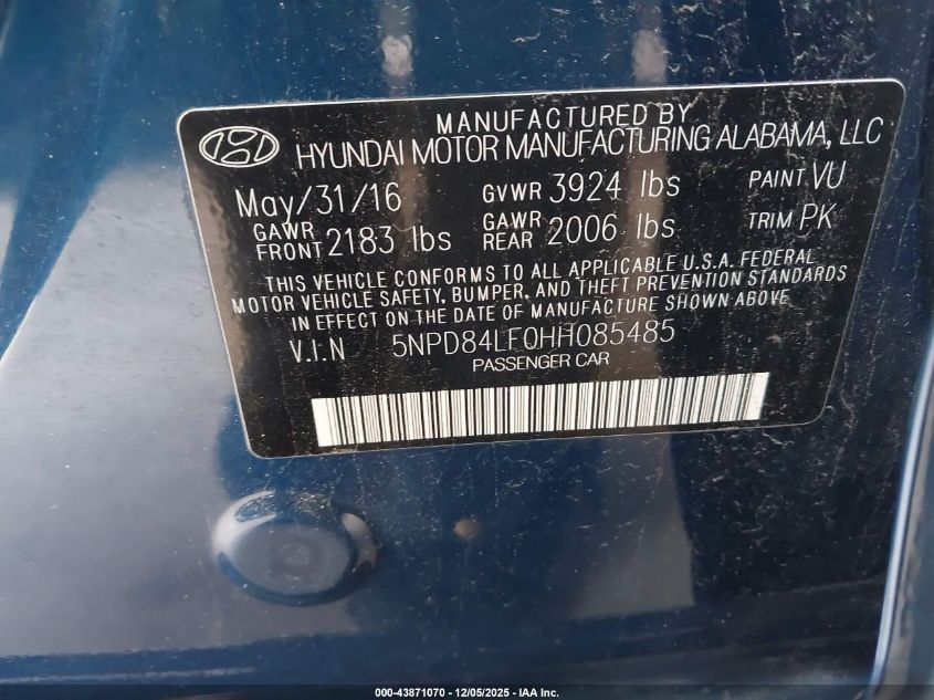 2017 HYUNDAI ELANTRA 2017 року Бензин, 2.0, Передний привод, vin - 5NPD84LF0HH085485 из США