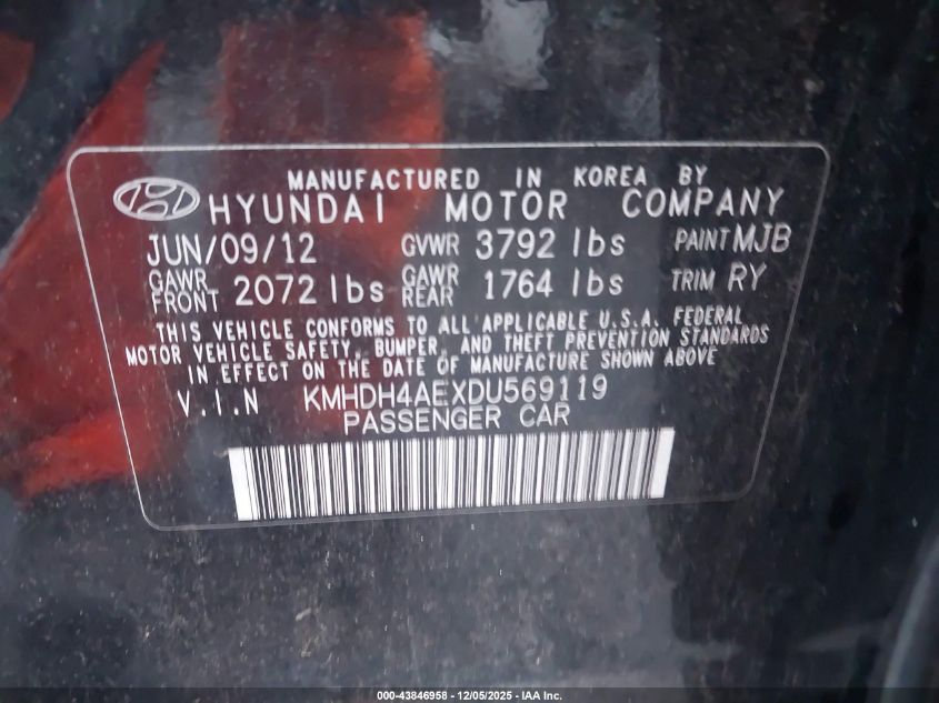 2013 HYUNDAI ELANTRA 2013 року Бензин, 1.8, Передний привод, vin - KMHDH4AEXDU569119 из США