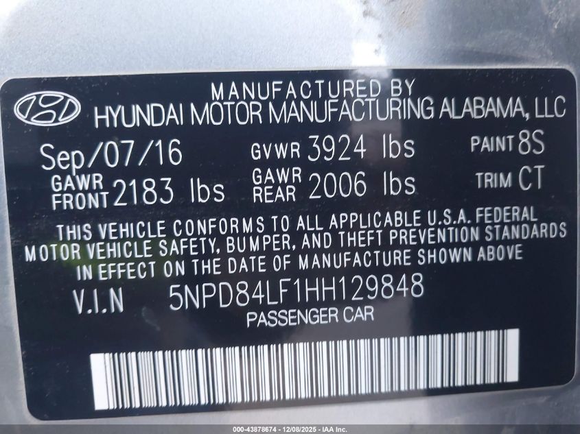2017 HYUNDAI ELANTRA 2017 року Бензин, 2.0, Передний привод, vin - 5NPD84LF1HH129848 из США