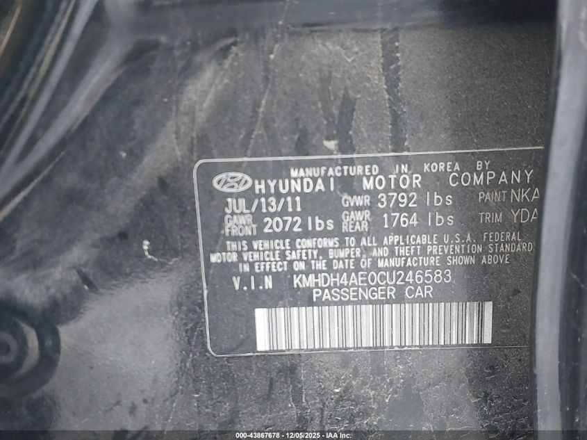 2012 HYUNDAI ELANTRA 2012 року Бензин, 1.8, Передний привод, vin - KMHDH4AE0CU246583 из США
