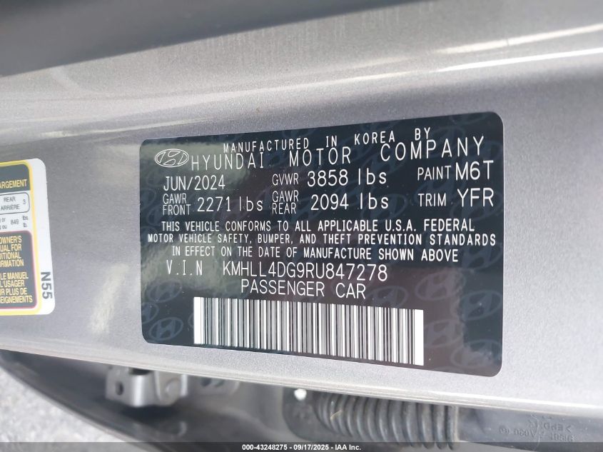 2024 HYUNDAI ELANTRA 2024 року Бензин, 2.0, Передний привод, vin - KMHLL4DG9RU847278 из США