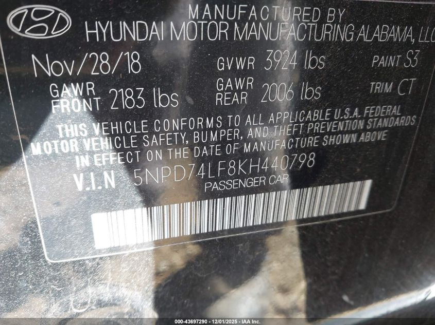 2019 HYUNDAI ELANTRA 2019 року Бензин, 2.0, Передний привод, vin - 5NPD74LF8KH440798 из США