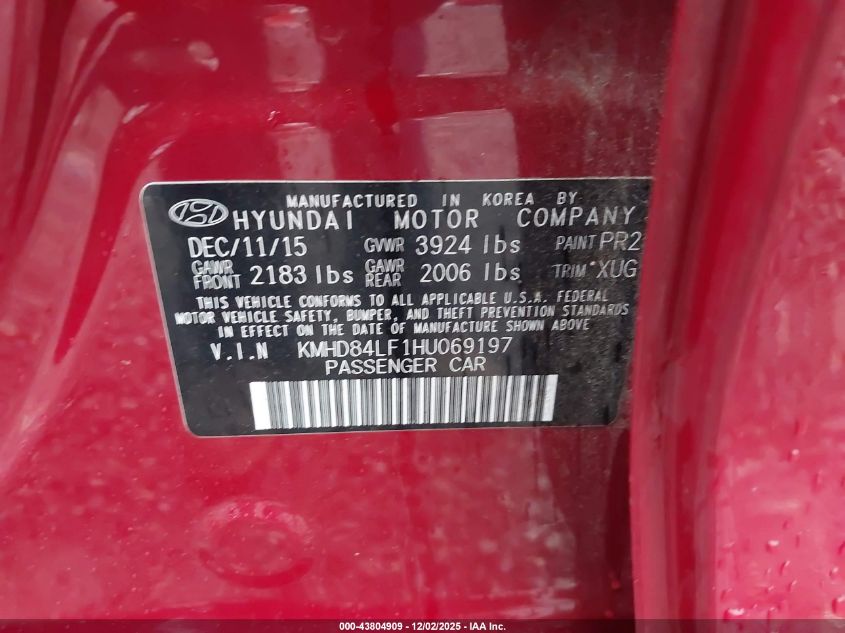 2017 HYUNDAI ELANTRA 2017 року Бензин, 2.0, Передний привод, vin - KMHD84LF1HU069197 из США