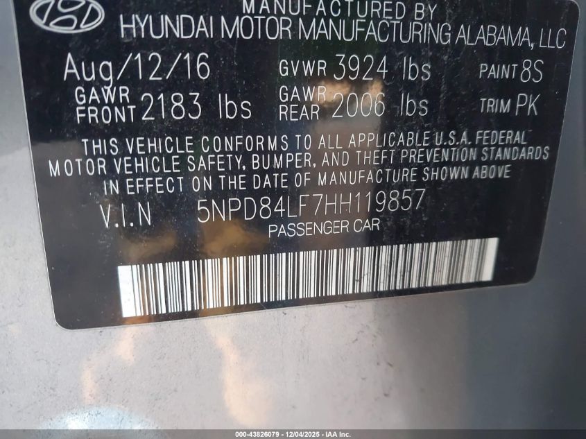 2017 HYUNDAI ELANTRA 2017 року Бензин, 2.0, Передний привод, vin - 5NPD84LF7HH119857 из США