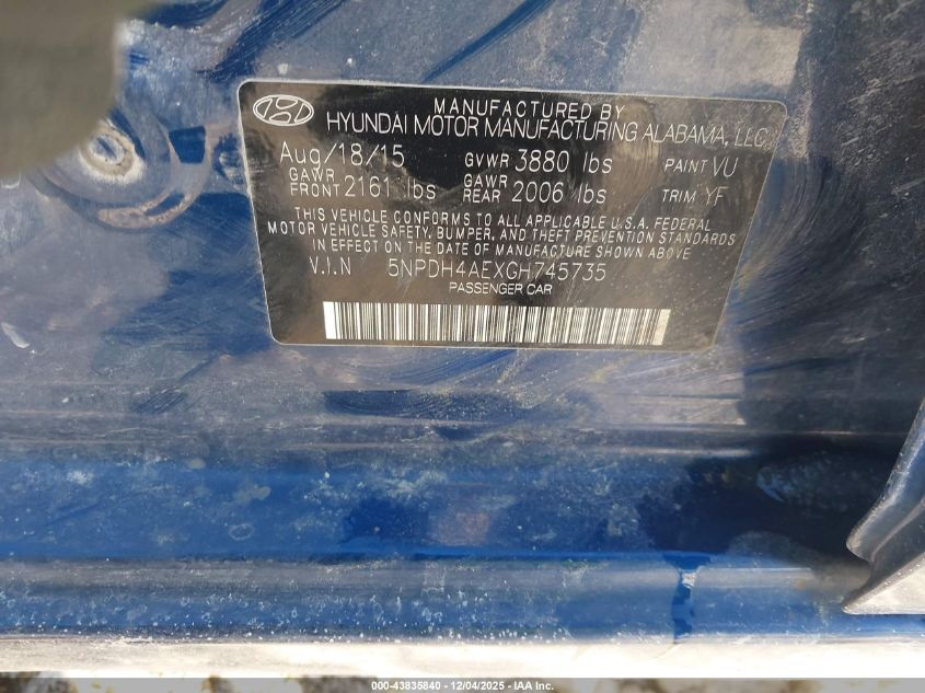 2016 HYUNDAI ELANTRA 2016 року Бензин, 1.8, Передний привод, vin - 5NPDH4AEXGH745735 из США