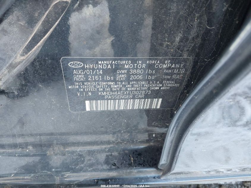 2015 HYUNDAI ELANTRA 2015 року Бензин, 1.8, Передний привод, vin - KMHDH4AEXFU302873 из США