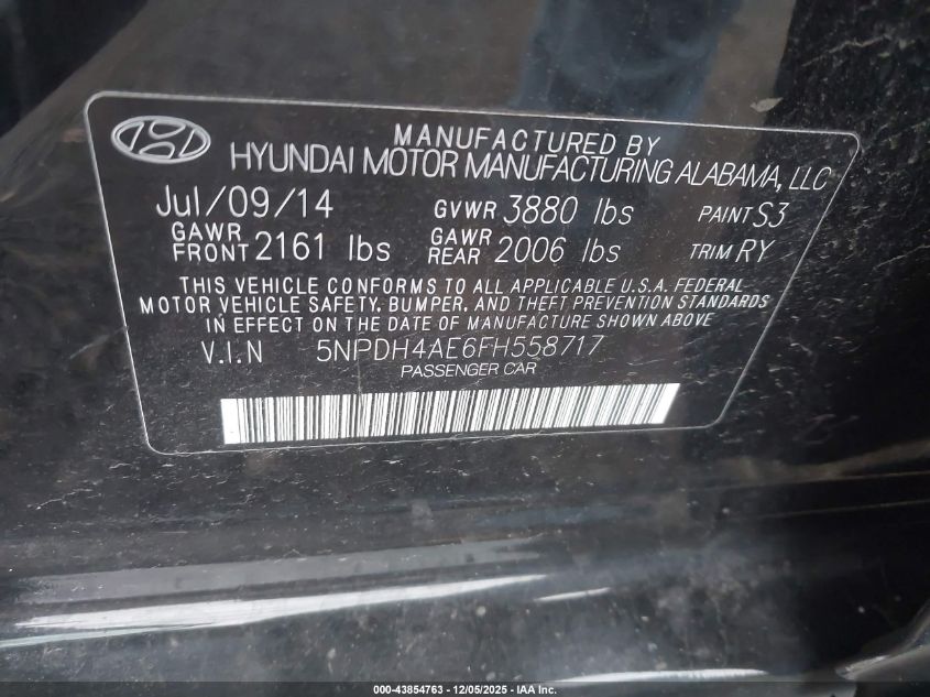 2015 HYUNDAI ELANTRA 2015 року Бензин, 1.8, Передний привод, vin - 5NPDH4AE6FH558717 из США