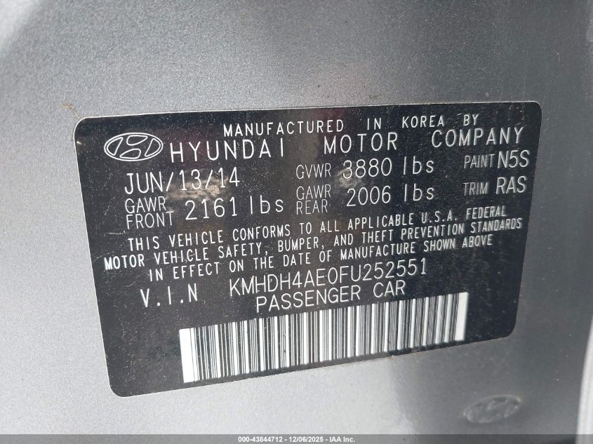 2015 HYUNDAI ELANTRA 2015 року Бензин, 1.8, Передний привод, vin - KMHDH4AE0FU252551 из США