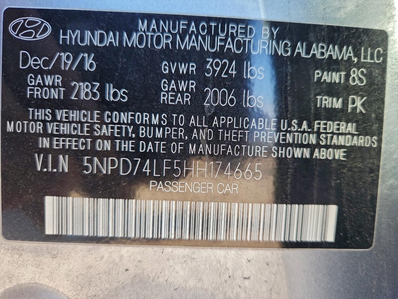 2017 HYUNDAI ELANTRA 2017 року Бензин, 2.0, , vin - 5NPD74LF5HH174665 из США