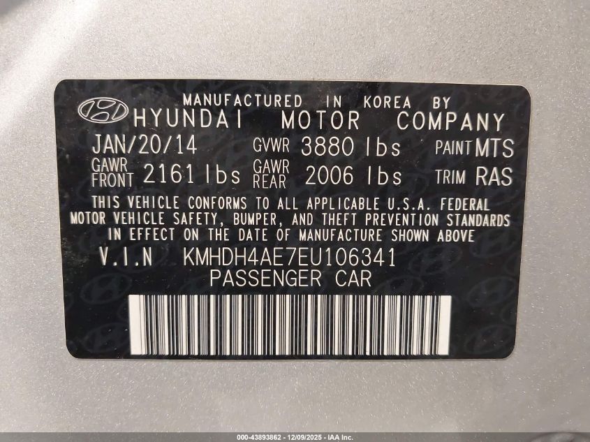 2014 HYUNDAI ELANTRA 2014 року Бензин, 1.8, Передний привод, vin - KMHDH4AE7EU106341 из США
