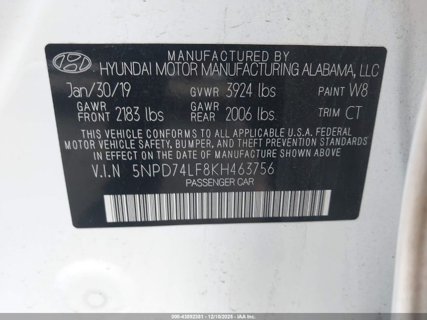 2019 HYUNDAI ELANTRA 2019 року Бензин, 2.0, Передний привод, vin - 5NPD74LF8KH463756 из США