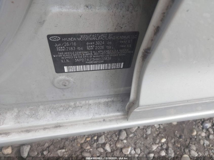 2017 HYUNDAI ELANTRA 2017 року Бензин, 2.0, Передний привод, vin - 5NPD74LF5HH100839 из США