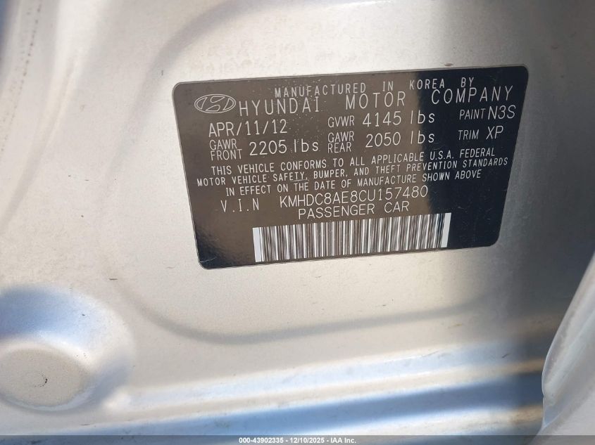 2012 HYUNDAI ELANTRA 2012 року Бензин, 2.0, Передний привод, vin - KMHDC8AE8CU157480 из США