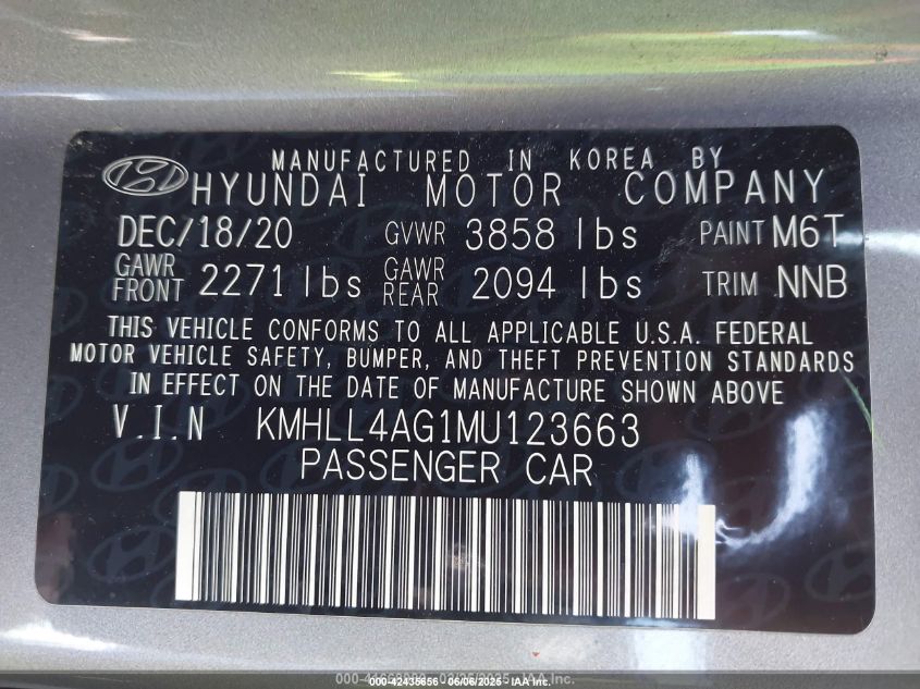 2021 HYUNDAI ELANTRA 2021 року Бензин, 2.0, Передний привод, vin - KMHLL4AG1MU123663 из США