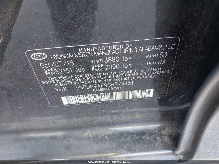2016 HYUNDAI ELANTRA 2016 року Бензин, 1.8, Передний привод, vin - 5NPDH4AE9GH774451 из США