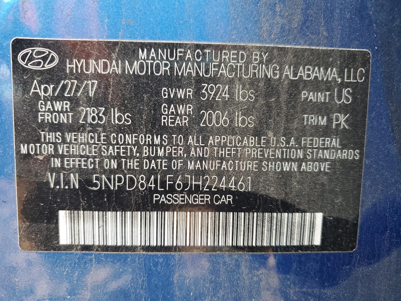 Цвет СинийЦилиндры 4VIN 5NPD84LF6JH224461Состояние Заводится и едет (проверено)Повреждения По бокамДата аукциона 2025-12-08 AutoRIA