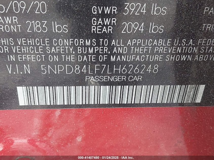 2020 HYUNDAI ELANTRA 2020 року Бензин, 2.0, Передний привод, vin - 5NPD84LF7LH626248 из США