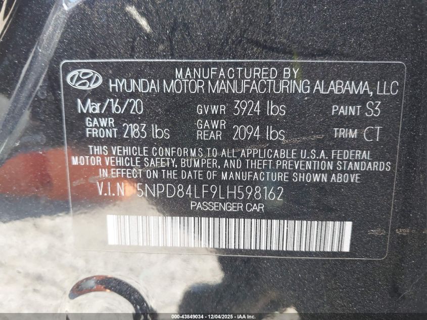 2020 HYUNDAI ELANTRA 2020 року Бензин, 2.0, Передний привод, vin - 5NPD84LF9LH598162 из США
