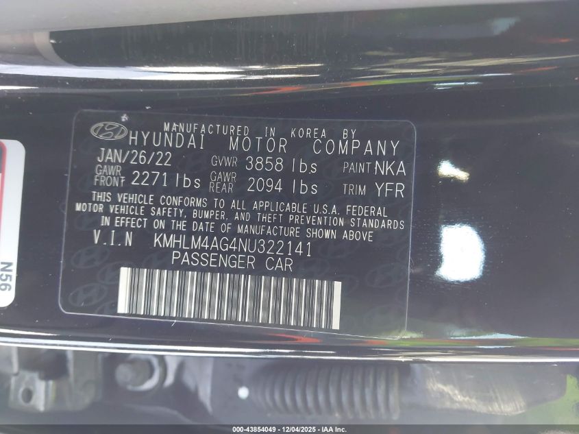 2022 HYUNDAI ELANTRA 2022 року Бензин, 2.0, Передний привод, vin - KMHLM4AG4NU322141 из США