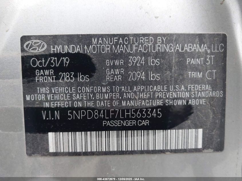2020 HYUNDAI ELANTRA 2020 року Бензин, 2.0, Передний привод, vin - 5NPD84LF7LH563345 из США