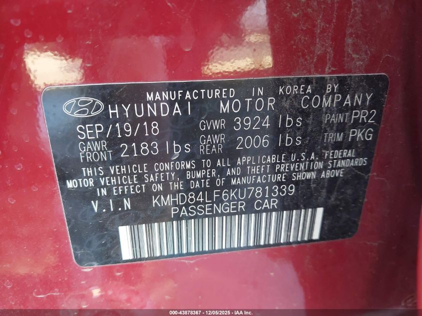 2019 HYUNDAI ELANTRA 2019 року Бензин, 2.0, Передний привод, vin - KMHD84LF6KU781339 из США