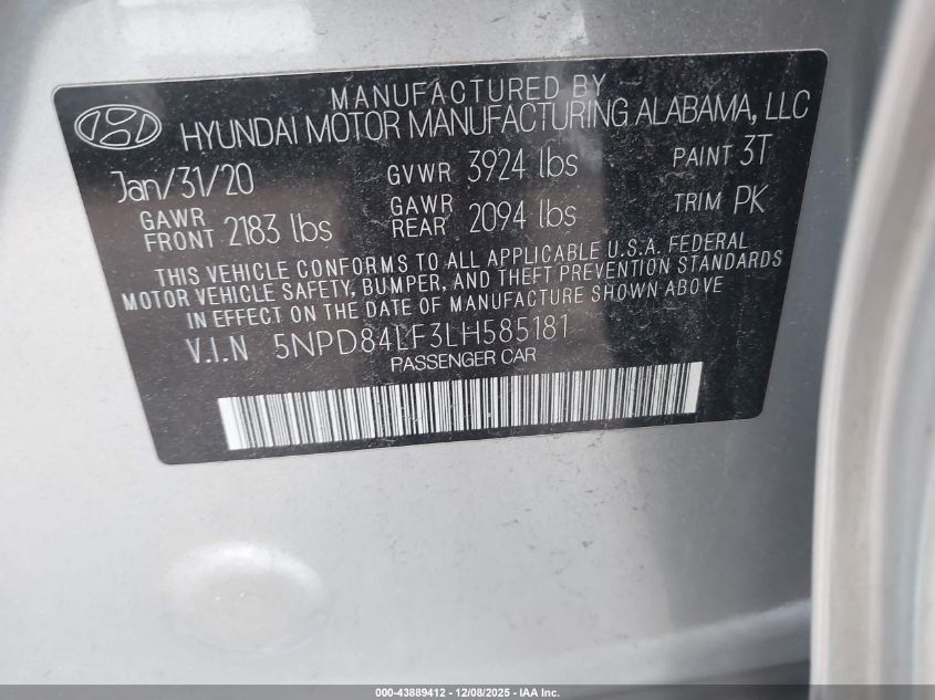 2020 HYUNDAI ELANTRA 2020 року Бензин, 2.0, Передний привод, vin - 5NPD84LF3LH585181 из США