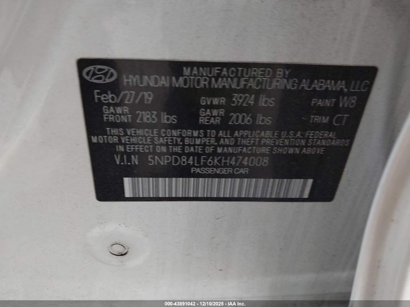 2019 HYUNDAI ELANTRA 2019 року Бензин, 2.0, Передний привод, vin - 5NPD84LF6KH474008 из США