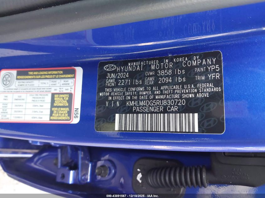 2024 HYUNDAI ELANTRA 2024 року Бензин, 2.0, Передний привод, vin - KMHLM4DG5RU830720 из США