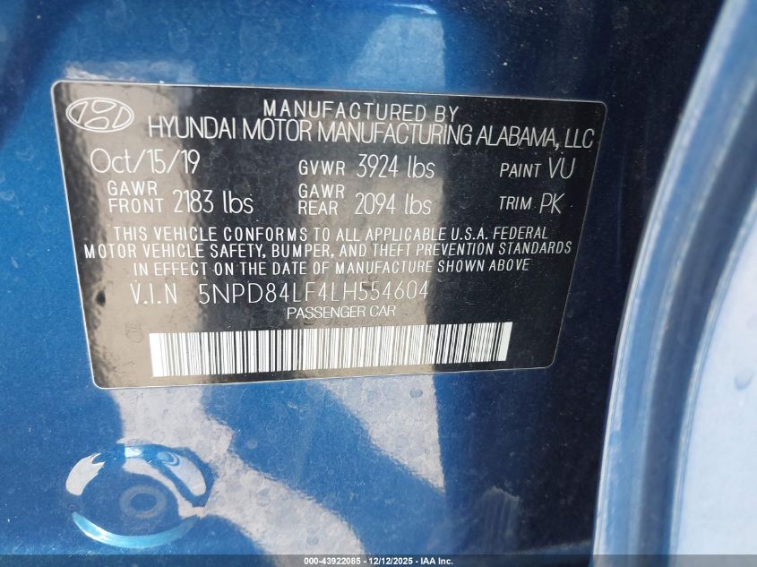2020 HYUNDAI ELANTRA 2020 року Бензин, 2.0, Передний привод, vin - 5NPD84LF4LH554604 из США