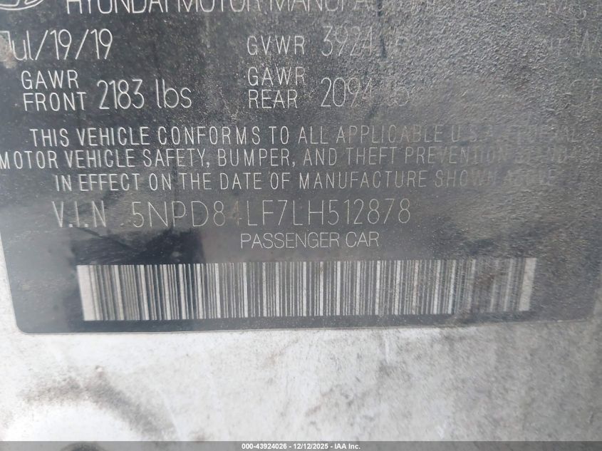 2020 HYUNDAI ELANTRA 2020 року Бензин, 2.0, Передний привод, vin - 5NPD84LF7LH512878 из США