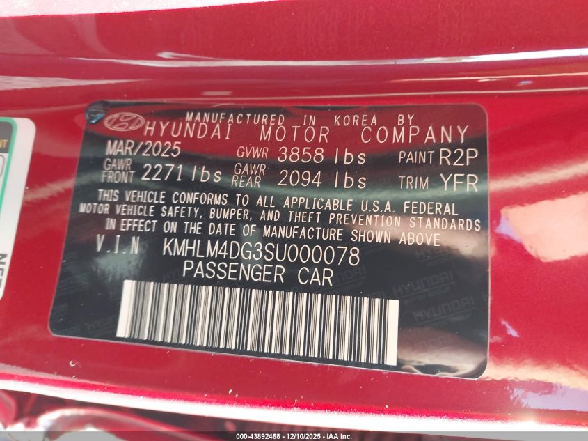 2025 HYUNDAI ELANTRA 2025 року Бензин, 2.0, Передний привод, vin - KMHLM4DG3SU000078 из США