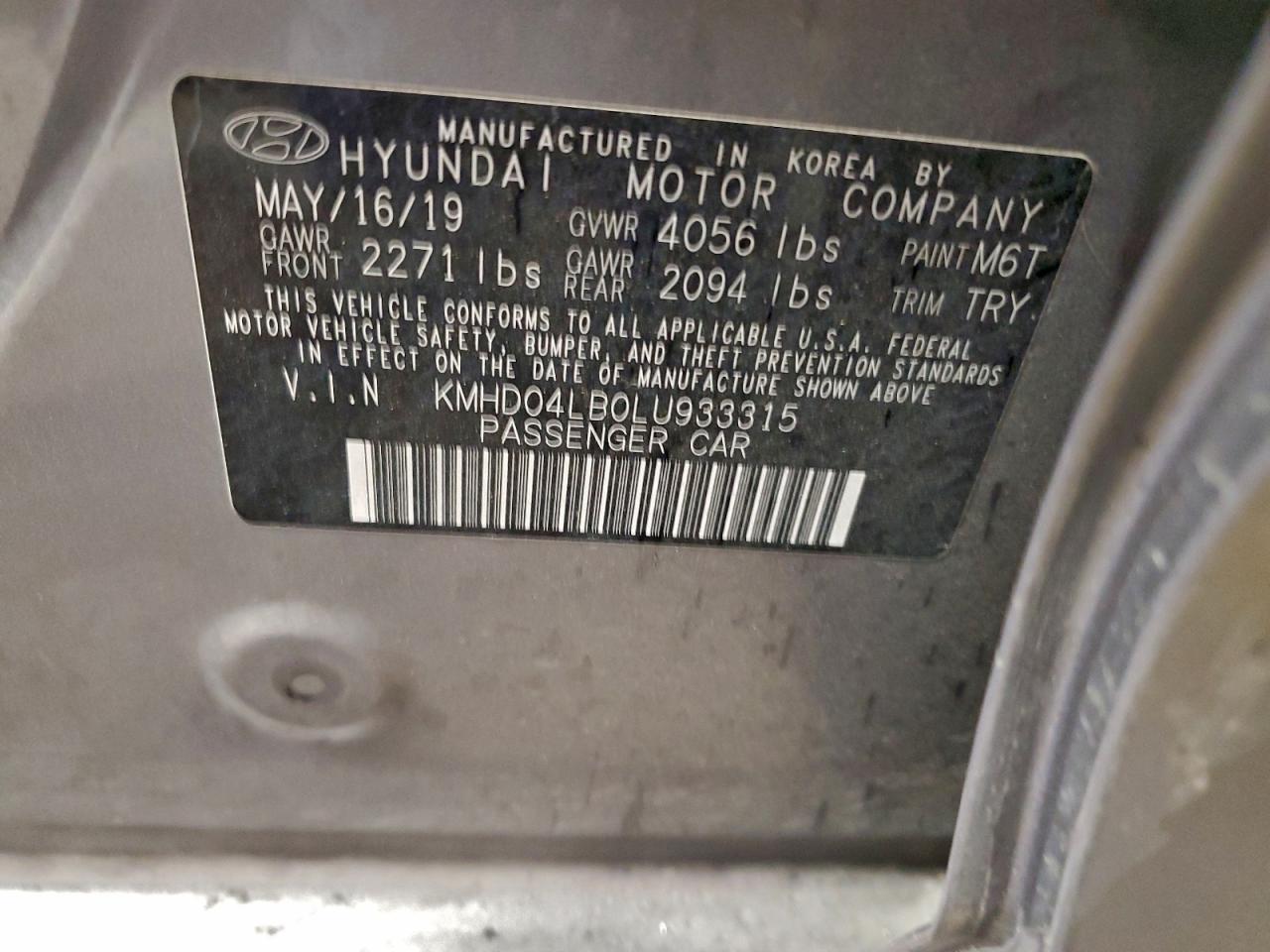2020 HYUNDAI ELANTRA 2020 року Бензин, 1.6, , vin - KMHD04LB0LU933315 из США
