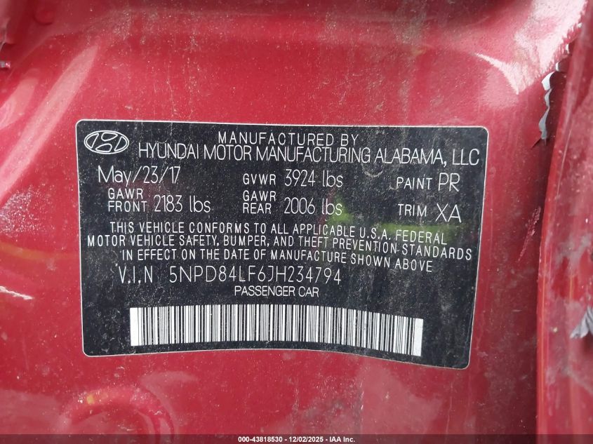 2018 HYUNDAI ELANTRA 2018 року Бензин, 2.0, Передний привод, vin - 5NPD84LF6JH234794 из США