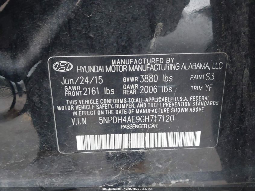 2016 HYUNDAI ELANTRA 2016 року Бензин, 1.8, Передний привод, vin - 5NPDH4AE9GH717120 из США