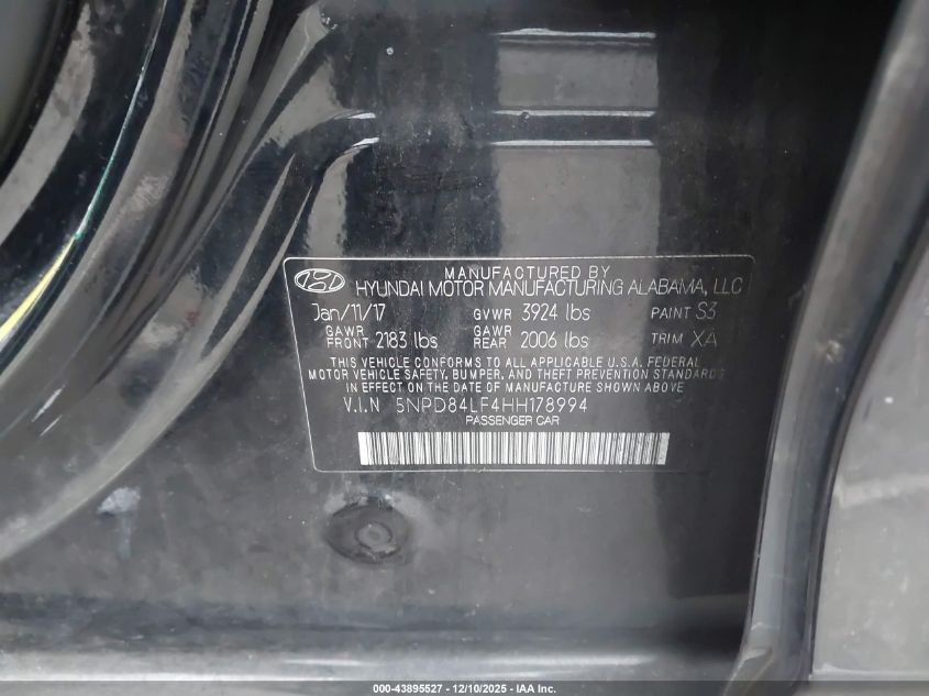 2017 HYUNDAI ELANTRA 2017 року Бензин, 2.0, Передний привод, vin - 5NPD84LF4HH178994 из США