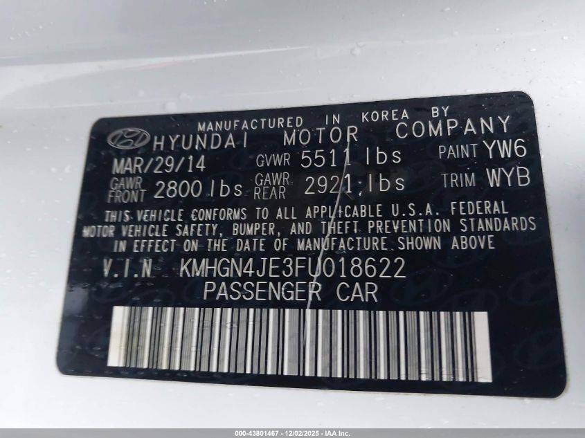 2015 HYUNDAI GENESIS 2015 року Бензин, 3.8, Полный привод, vin - KMHGN4JE3FU018622 из США