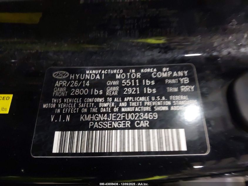 2015 HYUNDAI GENESIS 2015 року Бензин, 3.8, Полный привод, vin - KMHGN4JE2FU023469 из США