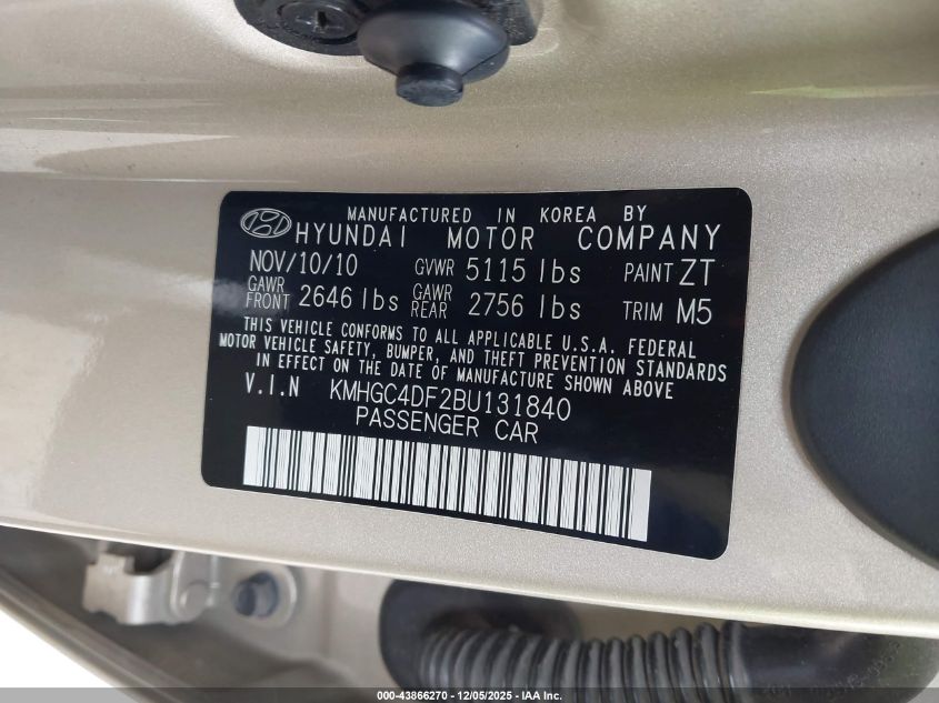 2011 HYUNDAI GENESIS 4.6L