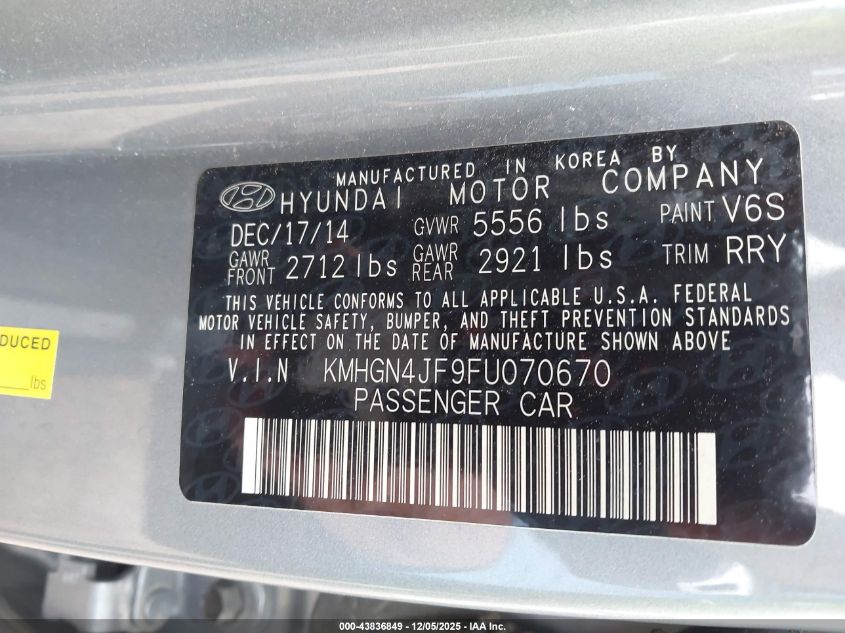 2015 HYUNDAI GENESIS 2015 року Бензин, 5.0, Задний привод, vin - KMHGN4JF9FU070670 из США