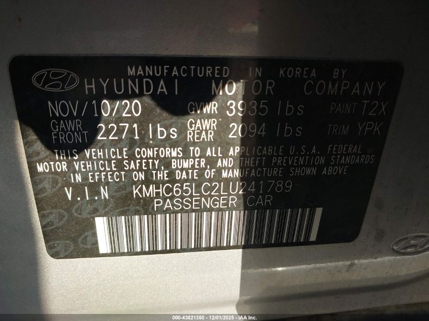 2020 HYUNDAI IONIQ 2020 року Гибрид, 1.6, Передний привод, vin - KMHC65LC2LU241789 из США