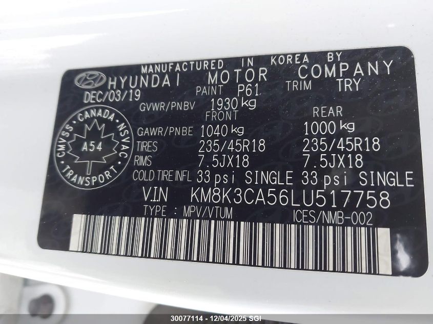 2020 HYUNDAI KONA 2020 року Бензин, , Полный привод, vin - KM8K3CA56LU517758 из США