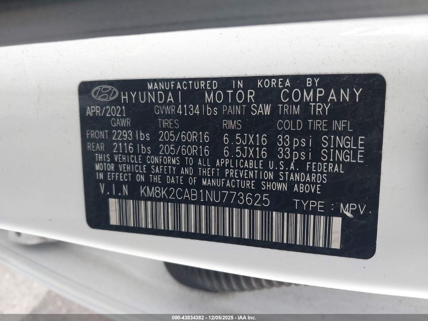 2022 HYUNDAI KONA 2022 року Бензин, 2.0, Полный привод, vin - KM8K2CAB1NU773625 из США