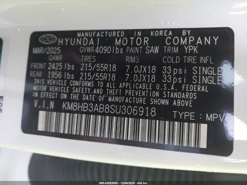 2025 HYUNDAI KONA 2025 року Бензин, 2.0, Передний привод, vin - KM8HB3AB8SU306918 из США