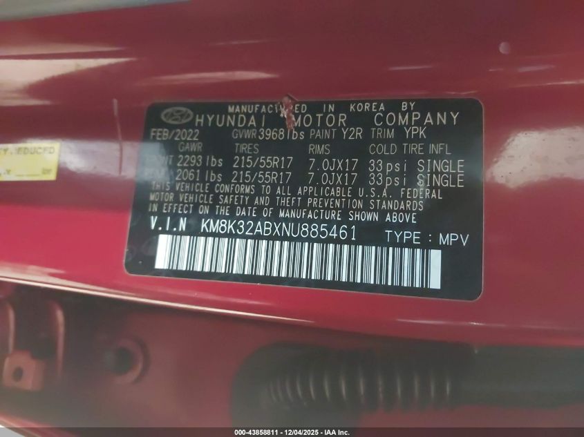 2022 HYUNDAI KONA 2022 року Бензин, 2.0, Передний привод, vin - KM8K32ABXNU885461 из США