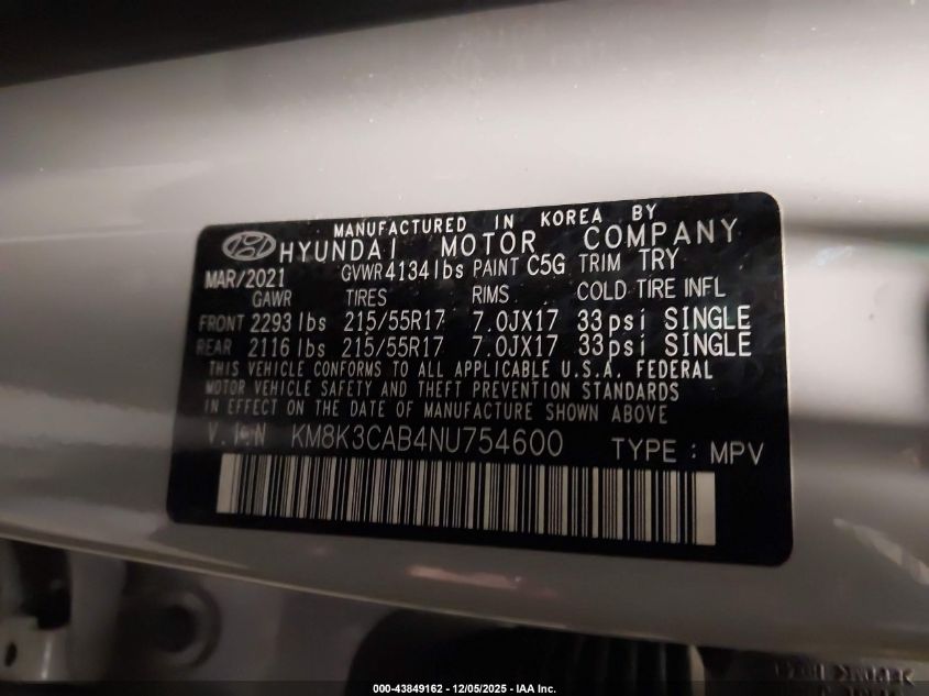 Цвет СерыйЦилиндры 4Привод Полный приводVIN KM8K3CAB4NU754600Состояние СтационарноПовреждения Передняя или задняя AutoRIA