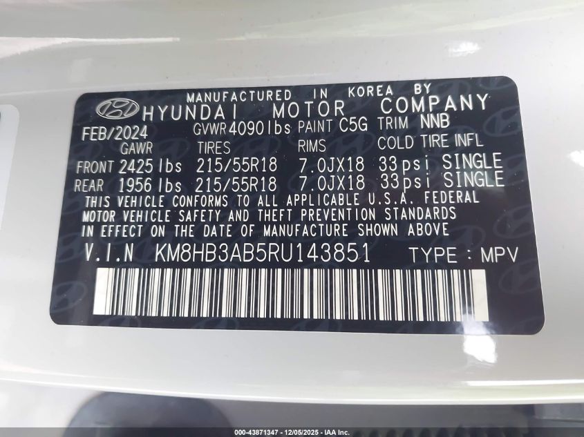 2024 HYUNDAI KONA 2024 року Бензин, 2.0, Передний привод, vin - KM8HB3AB5RU143851 из США