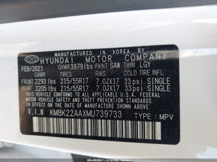 2021 HYUNDAI KONA 2021 року Бензин, 2.0, Передний привод, vin - KM8K22AAXMU739733 из США