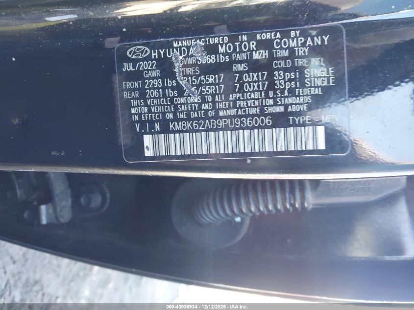 2023 HYUNDAI KONA 2023 року Бензин, 2.0, Передний привод, vin - KM8K62AB9PU936006 из США