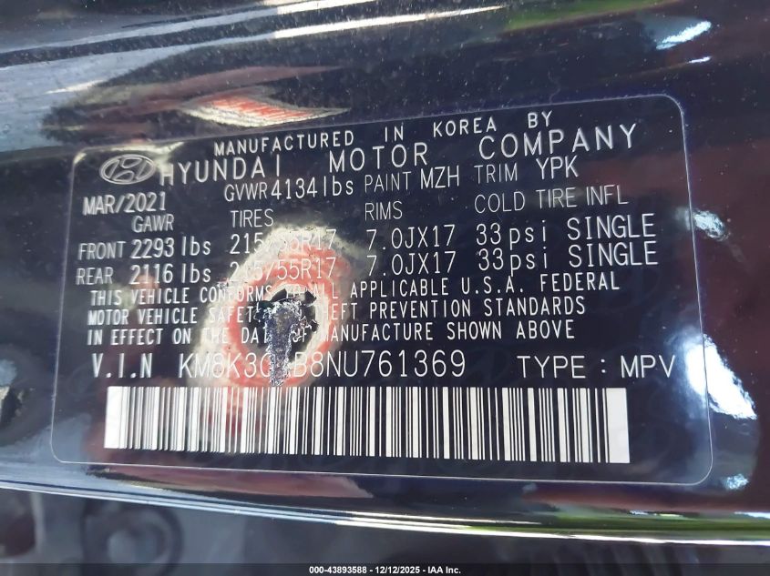 2022 HYUNDAI KONA 2022 року Бензин, 2.0, Полный привод, vin - KM8K3CAB8NU761369 из США