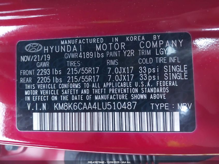 2020 HYUNDAI KONA 2020 року Бензин, 2.0, Полный привод, vin - KM8K6CAA4LU510487 из США